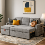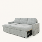 The StoreLuxe L Shape Sofa Bed combines modern comfort, sophisticated detailing, and space saving functionality in one versatile design. This 3 seater sectional effortlessly converts into a pull out bed with a smooth, one-motion mechanism, perfect for hosting overnight guests. Upholstered in soft fabric and highlighted by button tufted armrests with decorative studs, it adds a refined touch to your living space. Built in storage within the chaise keeps blankets, pillows, or other essentials neatly tucked away, making StoreLuxe a smart choice for stylish, functional living.