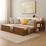 The Zava Sofa Bed blends modern functionality with practical design. This wooden 3 seater offers plush comfort for everyday lounging and effortlessly transforms into a pull out bed for overnight guests. Built in storage compartments and shelves on the armrests keep essentials within easy reach, while the MDF wood frame ensures lasting durability. Upholstered in soft fabric, Zava is the ideal space saving solution for small apartments, guest rooms, or multifunctional living spaces delivering both style and utility in one