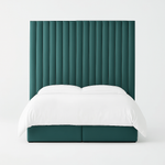 The Grand Channel Panel Bed makes an unforgettable statement with its towering 300 cm W x 288 cm H headboard. Bold vertical channel tufting adds dramatic height and refined texture, creating a striking focal point in any bedroom. Upholstered in luxurious velvet, the sculptural headboard is complemented by a sleek divan base, maintaining a clean, tailored silhouette. Built on a sturdy solid wood frame, the Grand Channel Panel Bed combines visual impact with lasting comfort, making it both a stylish and functional centerpiece.