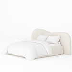 Visual Appeal: Petal-inspired curved headboard, seamless floor extension, and textured bouclé create an elegant, bold, and harmonious statement.