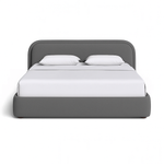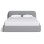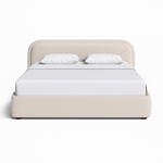 The Obscura Bed blends soft curves with clean geometric lines to create a modern, calming presence in the bedroom. Its gently arched headboard introduces subtle elegance, while the rectangular platform base maintains a sleek and grounded silhouette. Upholstered in textured bouclé fabric, Obscura offers a cozy, tactile feel without overwhelming the space. Built on a sturdy solid wood base, this bed provides reliable support and everyday comfort, balancing minimal design with lasting functionality.