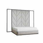 The Regalia Mirror Panel Bed exudes luxury and refinement, transforming any bedroom into a statement of elegance. Its 340 cm W x 288 cm H headboard features an intricate patterned design flanked by built-in mirrors, reflecting light and space to enhance the room’s grandeur. Upholstered in luxurious velvet, the high headboard demonstrates meticulous attention to detail, serving as a dramatic centerpiece. Built on a sturdy solid wood frame, Regalia combines enduring support with upscale style, creating a bed that is both functional and visually stunning.