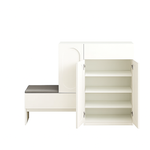 Configuration: Integrated cushioned bench seat above a concealed shoe storage compartment