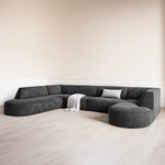 A statement piece that seamlessly blends modern design with everyday comfort. Upholstered in soft fabric, the Aira features a sturdy frame and medium-firm cushioning for a perfect balance of support and relaxation. Its distinctive round chaise introduces a sculptural, contemporary element while providing generous extra seating ideal for lounging or entertaining. With clean lines, expansive proportions, and a refined silhouette, Aira brings both style and function to any modern living space.