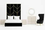 Nightstands & Dresser: Smooth matte surface with gold edge detailing