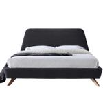 The perfect focal point for any bedroom, this upholstered platform bed sets the stage in mid-century modern sleeping chambers. Its solidly-hued polyester upholstery is wrapped over foam for a clean-lined and stylish headboard design, and finished off with an understated platform base and splayed wooden legs.