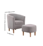 This cozy barrel chair is upholstered in soft fabric and comes complete with a matching ottoman—perfect for kicking up your feet and unwinding after a long day. Its rounded silhouette adds a touch of modern comfort to any room, making it a great choice for living spaces, reading nooks, or bedrooms.