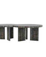 The Belluno Round Travertine Set is crafted from genuine travertine stone, featuring two interlocking round tabletops that flow together in seamless harmony. Each piece reveals the stone’s warm beige tones and distinctive veining, celebrating the timeless elegance of natural materials. Supported by bold solid block legs, Belluno embodies both strength and architectural grace. More than a functional surface, it stands as a centerpiece — a fusion of art and utility that anchors your living space with effortless sophistication. Perfect for modern, minimalist, and luxury interiors alike.