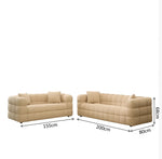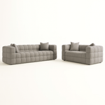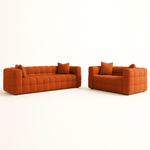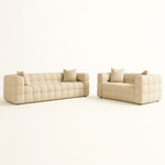 The Ciruli Sofa Set blends sculptural elegance with irresistible comfort, creating a bold design statement for modern interiors. Upholstered in ultra soft boucle fabric, each piece features a rounded, marshmallow inspired silhouette that adds playful charm while maintaining refined sophistication. The set includes a plush three seater sofa and a matching loveseat, both crafted on a sturdy frame and generously filled with high density sponge for lasting comfort and support. Two soft square pillows on each piece complete the lounge ready appeal, making this set a standout centerpiece for any contemporary living space.