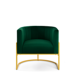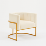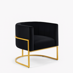 The Elowen Accent Chair strikes the perfect balance between modern elegance and everyday comfort. Upholstered in smooth velvet and supported by a golden metal base, it radiates sophistication while maintaining a sleek, versatile design. A chic addition to living rooms, bedrooms, or dressing areas, it elevates any space with its refined charm.