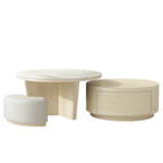 The Iris Coffee Table Set brings both style and functionality to your living space. Designed with modern living in mind, it includes a central coffee table paired with two matching stools offering seating, storage, and versatility in one elegant set. The coffee table features a combination of open storage and a smooth drawer compartment, helping you keep your space neat and organized. Crafted from durable MDF with a sleek marble finish, the Iris set blends contemporary elegance with everyday practicality, making it a perfect addition to modern homes.