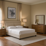 The Juniper Dawn Bedroom Set sits at the intersection of modern lodge and farmhouse aesthetics, offering warmth, charm, and timeless appeal. With its architectural details and welcoming design, this set creates a cozy retreat that reflects both rustic character and modern sensibility. Complete with a bed, supportive Bonnel spring mattress, two nightstands, and a spacious dresser, Juniper Dawn provides a perfectly balanced bedroom package — uniting comfort, storage, and farmhouse-inspired style.