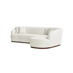 The Lunae Sofa blends sculptural curves with minimalist design for a relaxed yet refined aesthetic. Upholstered in soft bouclé fabric, its curved backrest, low-slung silhouette, and streamlined wooden base make it both cozy and contemporary. Designed for style and comfort, it comes with four matching toss pillows, making Lunae the perfect addition to modern living spaces that value form and function.