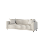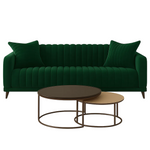 The Luxe Blanca Living Set brings timeless sophistication to contemporary interiors. The luxurious 3-seater sofa, upholstered in soft white velvet with chic channel tufting, exudes comfort and style. Complementing it, the two nested round coffee tables feature sleek black metal frames, creating a striking contrast while offering versatile surface space. Ideal for creating a refined, inviting living area, this set balances elegance, functionality, and modern design.