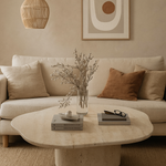 The Magnolia Travertine Coffee Table embodies sculptural elegance and natural charm. With its irregular round top and organic silhouette, it serves as both a functional table and a piece of art for your living space. Crafted from genuine travertine stone, each table showcases unique veining, textures, and patterns — ensuring no two pieces are alike. The polished surface enhances its refined character, making Magnolia a timeless centerpiece that balances sophistication with raw natural beauty.