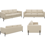 The Norae Sofa Set brings understated elegance and fresh minimalism to your living space. Featuring a sleek silhouette and clean lines, this 2-piece set includes a three seater sofa and a matching loveseat, both designed for style and everyday comfort. Upholstered in soft fabric with medium firm cushions, each piece offers balanced support for lounging or entertaining. Elevated black metal legs add a contemporary edge while ensuring long-lasting durability. Perfect for modern interiors, the Norae Set blends simplicity, functionality, and timeless appeal.