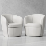 This 2-piece barrel chair set adds a sleek, modern touch to any living space. Upholstered in smooth faux leather, each chair features a tight back and recessed arms for a clean, sculpted look. The compact design offers a cozy, supportive seat that's perfect for relaxing in pairs—ideal for living rooms, offices, or reading nooks.