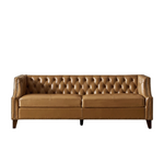 The Savile Sofa brings a fresh perspective to the iconic Chesterfield, blending timeless sophistication with modern appeal. Upholstered in luxurious faux leather, it features deep button tufting, refined nailhead trim, and a sturdy solid wood frame for enduring strength. Its transitional style makes it a versatile centerpiece, equally at home in classic interiors or sleek, contemporary spaces.