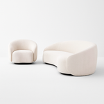 The Sferra C-Shape Sofa Set delivers modern sophistication with a sculptural twist. Defined by its rounded ends and smooth, continuous curves, this set creates a bold yet inviting focal point for your living space. Upholstered in soft touch fabric and anchored by a sturdy wooden base, it offers both visual elegance and everyday comfort. The set includes a spacious three seater sofa and a matching armchair, perfect for stylish lounging, relaxed conversations, or entertaining guests. Whether placed in a minimalist loft or a modern classic interior, Sferra makes a refined statement with its contemporary silhouette.