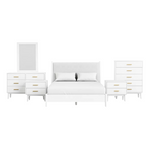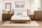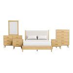 Transform your bedroom with the Silentia Bedroom Set, a perfect expression of mid-century modern design and practical functionality. Crafted from durable MDF with an upholstered headboard, this complete 7-piece set blends timeless style with contemporary comfort. The bed’s soft fabric headboard creates a warm, inviting focal point, while the matching casegoods provide ample storage to keep your space organized and elegant. With its balanced mix of clean lines, sturdy construction, and thoughtful design, Silentia delivers a sophisticated upgrade for any modern home.