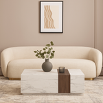 The Silex Center Table brings together luxurious textures and clean design to create a sophisticated centerpiece for modern living spaces. Featuring an MDF top with a marble-look finish, it is beautifully complemented by dark wood accent detailing, offering a refined balance of contrast and cohesion. Ideal for interiors that value contemporary elegance, the Silex elevates the room with its rich surfaces and functional presence—perfect for styling with decor or serving as a polished focal point.
