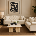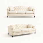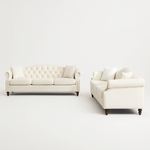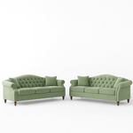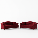 The Wexley Sofa Set is a refined homage to the classic Chesterfield design, offering a perfect balance of vintage charm and luxurious comfort. Showcasing deep button tufting, gracefully rolled arms, hand applied nailhead trim, and traditional turned wooden legs, this 2-piece set brings timeless elegance to your home. Upholstered in velvety soft fabric with plush tufted back cushions, each piece rests on a solid wood frame for lasting durability. Designed to enhance both traditional and transitional interiors, the Wexley Set serves as a warm, sophisticated focal point for any living room.