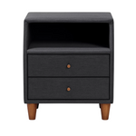 The Zelorn Nightstand brings a touch of comfort and sophistication to your bedroom with its unique upholstered design and soft, padded texture. Wrapped in durable polyester fabric and cushioned with foam, it offers a warm and cozy feel that beautifully complements modern interiors. Featuring two spacious drawers adorned with elegant wooden knobs and a handy open shelf, this nightstand combines functionality and refined style. Perfect for keeping bedside essentials neatly stored while adding a plush, contemporary aesthetic, the Zelorn Nightstand reflects Lux Heaven’s commitment to comfort, craftsmanship, and luxury design.
